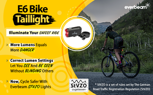 Illuminate Your Safest Ride: It’s no secret that StVZO bike taillights should not flash or blind others. Not only illegal in some countries, but can trigger seizures in vulnerable motorists following behind you. So now you know you can either choose back lights that illuminates your safest ride, or one that puts you and others, in harms’ way. See you on the road, with Everbeam